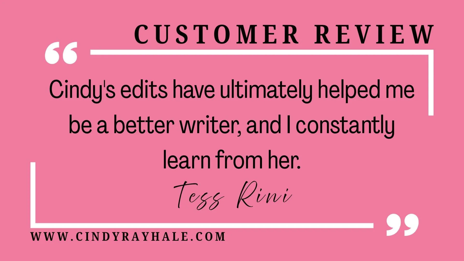 As a new writer, I had no idea where to turn to find a good editor. After a few false starts, somehow the stars aligned to help me find my way to Cindy Ray Hale. Fast forward six books into my eight-book series and I rely on her skills and talent to help me cross the finish line. Cindy's edits have ultimately helped me be a better writer, and I constantly learn from her. I'm so happy to have her be a part of my writing career.